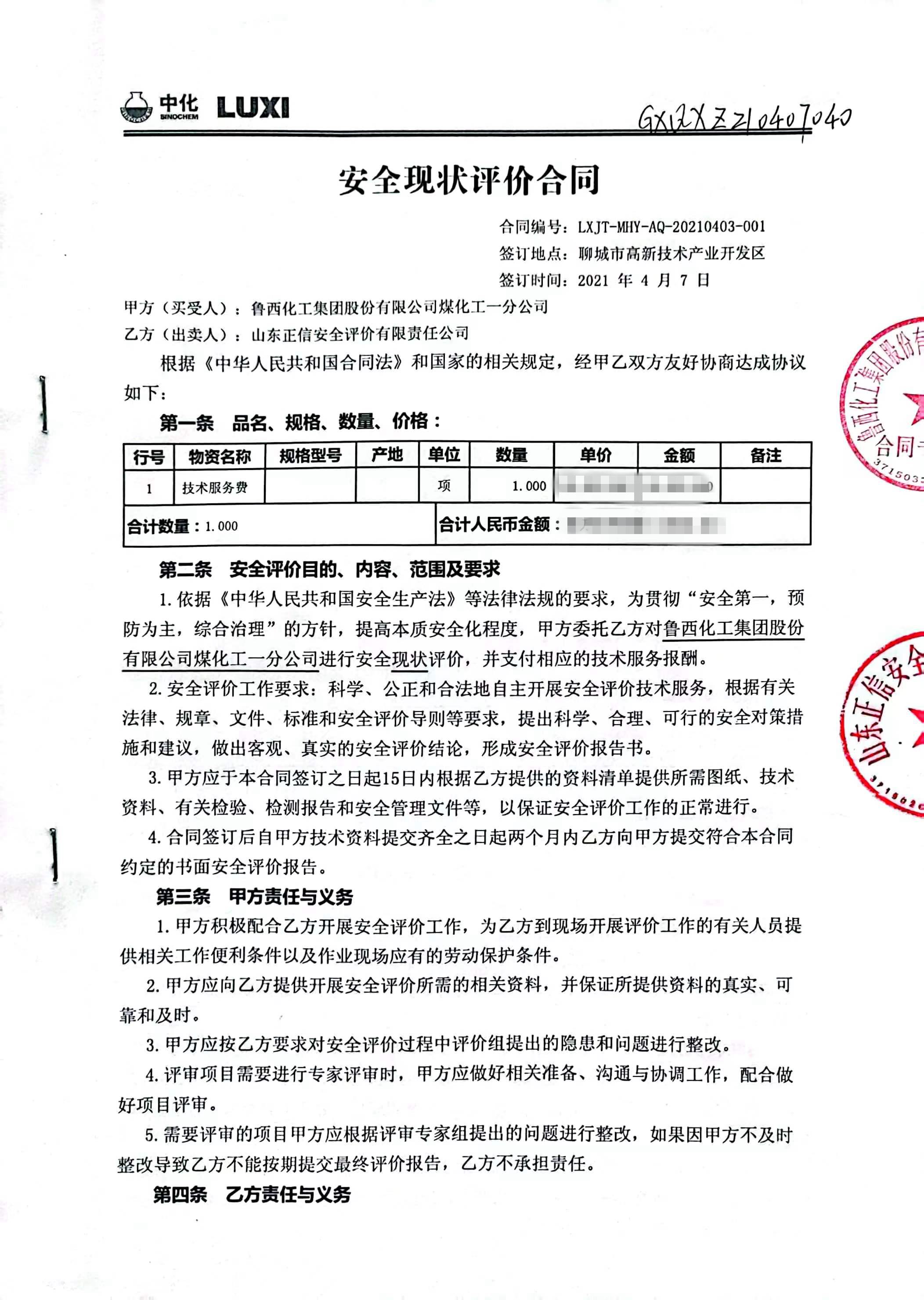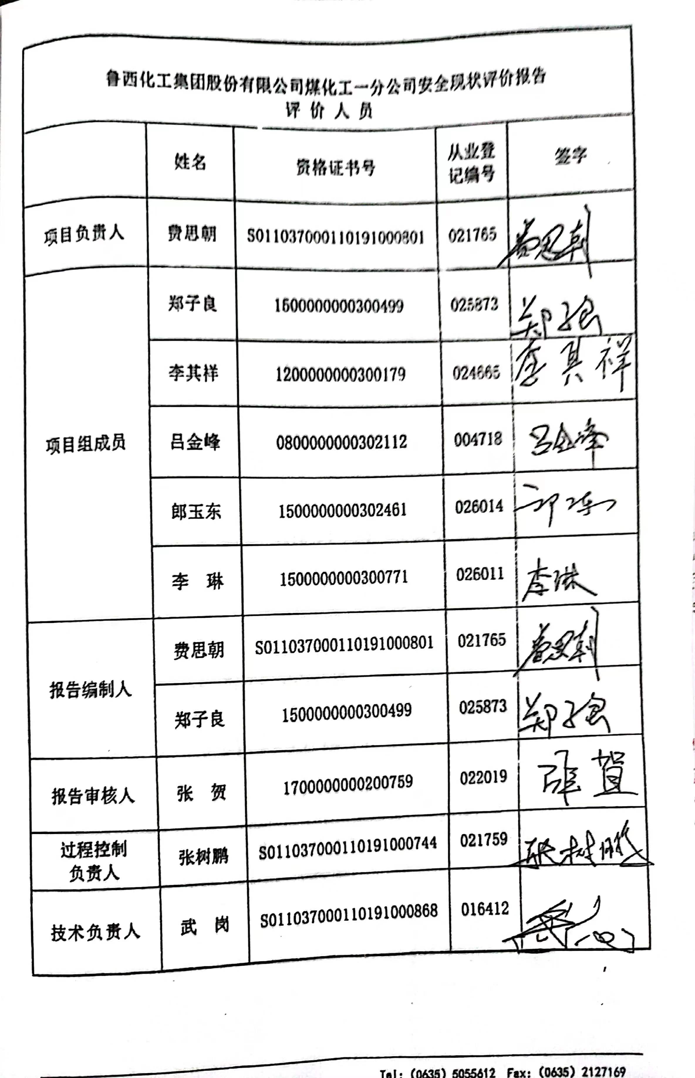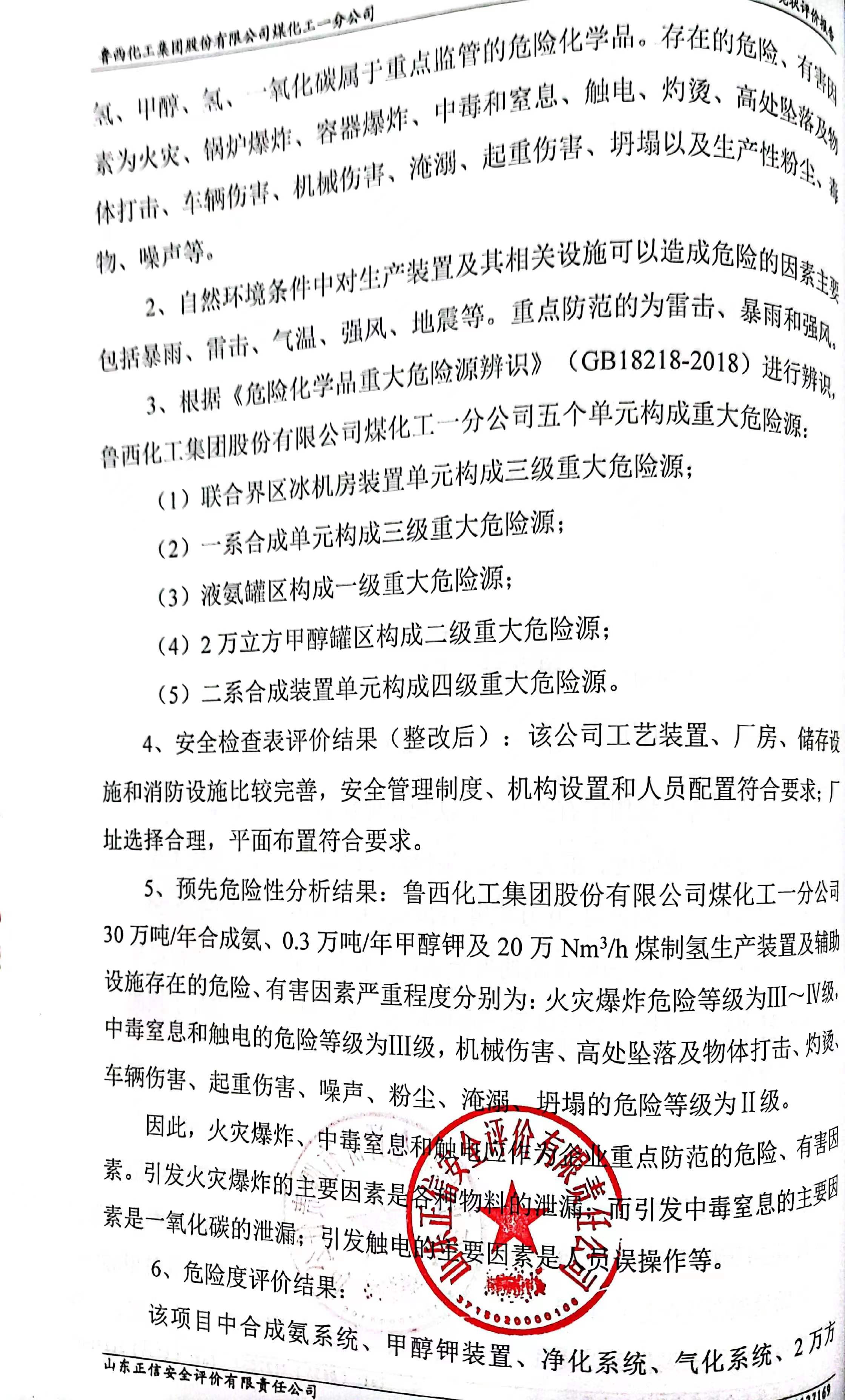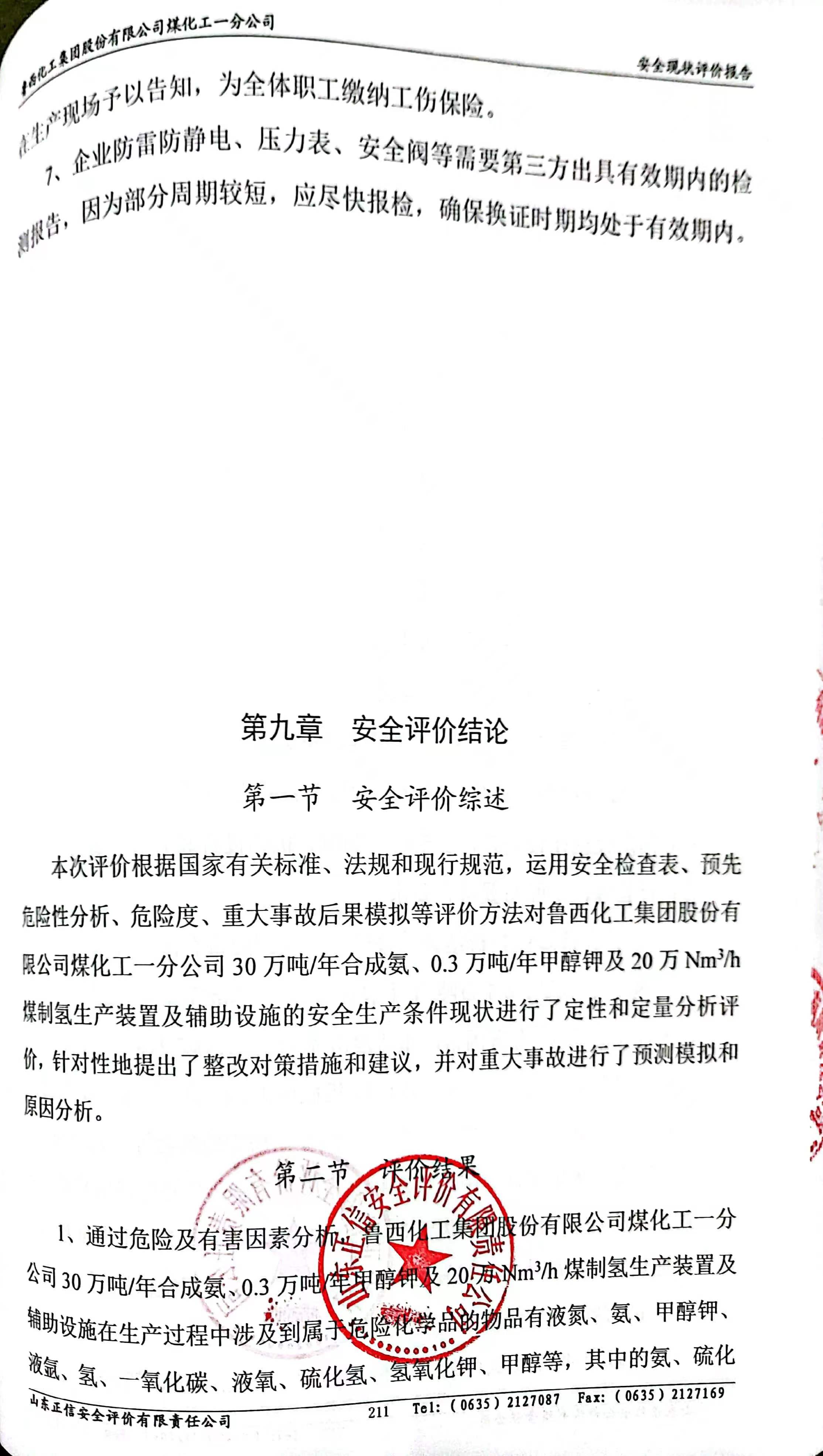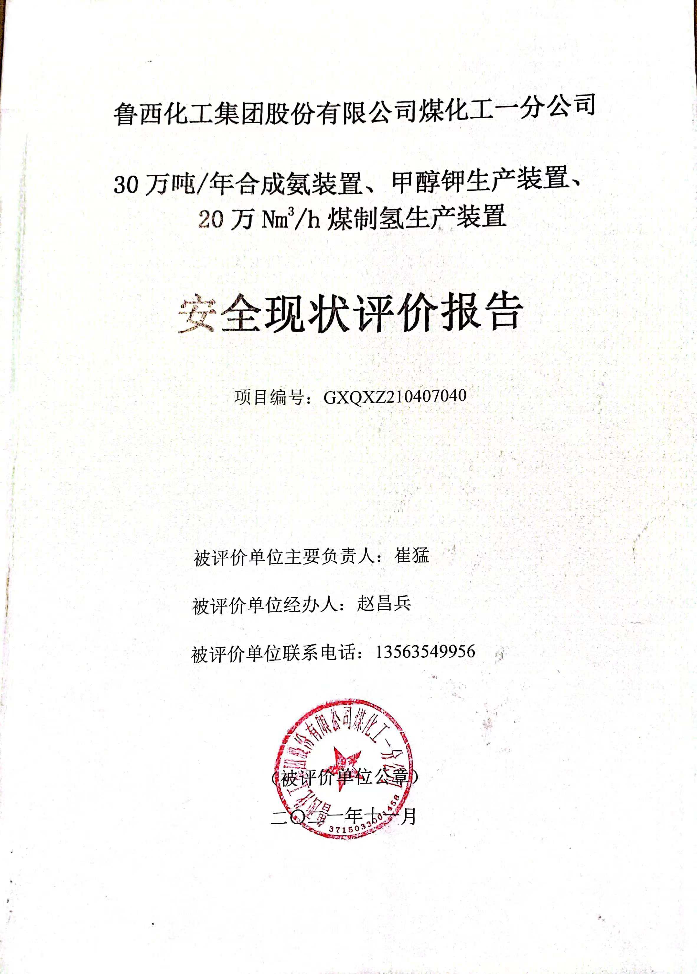 魯西化工集團(tuán)股份有限公司 煤化工一分公司 安全現(xiàn)狀評(píng)價(jià)報(bào)告